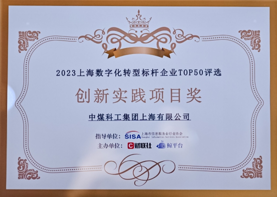 近日,在“2023上海数字化转型标杆企业TOP50评选”活动中,上海煤科数字化转型项目荣获“创新实践项目”奖,标志着上海煤科在制造业数字化转型建设中的实践得到了广泛认可。